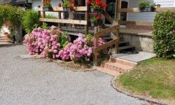 – Jardin sur l’arrière (110 m²) avec un portique commun aux 2 gîtes.
